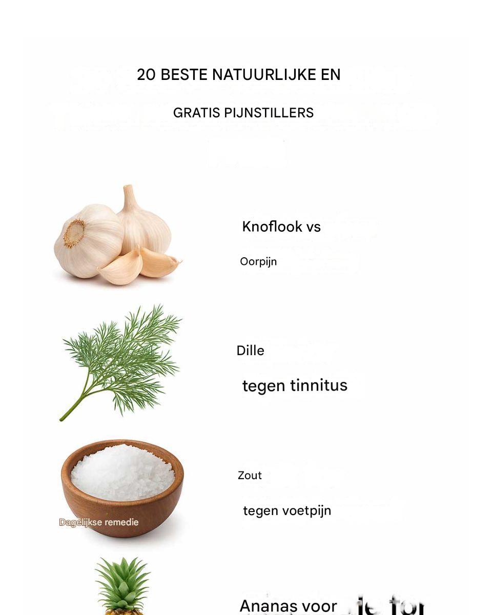 In een wereld waar medicijnen vaak de belangrijkste bron van pijnverlichting zijn, zoeken veel mensen naar natuurlijke oplossingen die effectief zijn en geen synthetische chemicaliën bevatten. Natuurlijke pijnstillers worden al eeuwenlang in verschillende culturen gebruikt en zijn vaak afkomstig van planten, mineralen en andere natuurlijke bronnen. Deze middelen verlichten niet alleen ongemak, maar hebben ook minder bijwerkingen, waardoor ze een veiliger alternatief zijn voor langdurig gebruik. In dit artikel presenteren we de 20 beste natuurlijke pijnstillers die je in je keuken, tuin of natuurvoedingswinkel kunt vinden.