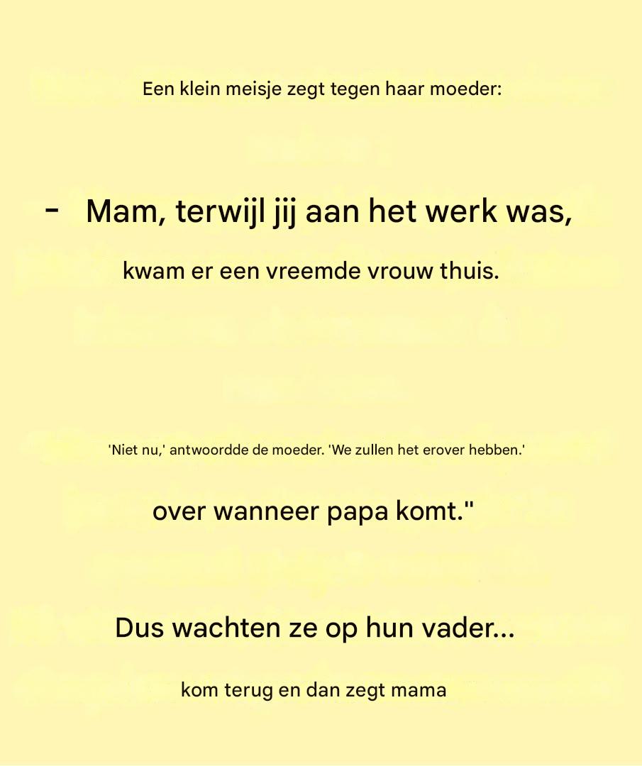 Een onschuldig meisje zit aan tafel en zegt met een ondeugende glimlach iets wat de rust in haar gezin zal verstoren: "Mam, terwijl jij aan het werk was, is er een vreemde dame thuisgekomen." Hoewel deze opmerking onschuldig lijkt, verbergt ze veel meer dan op het eerste gezicht lijkt. De moeder, verdiept in haar taken, verstijft onmiddellijk. Een vreemde dame? Deze hint wekt argwaan, maar de moeder verkiest het gesprek uit te stellen tot de vader arriveert.