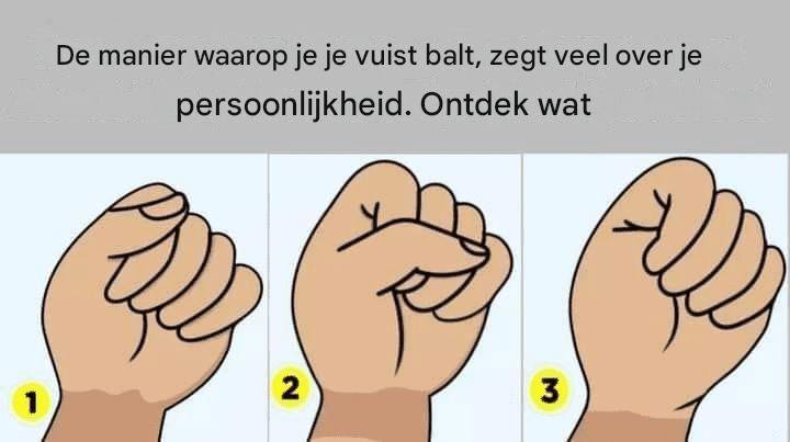 Zoek hieronder de afbeelding die het meest op je vuist lijkt en lees verder om te ontdekken wat die over je persoonlijkheid zegt.
