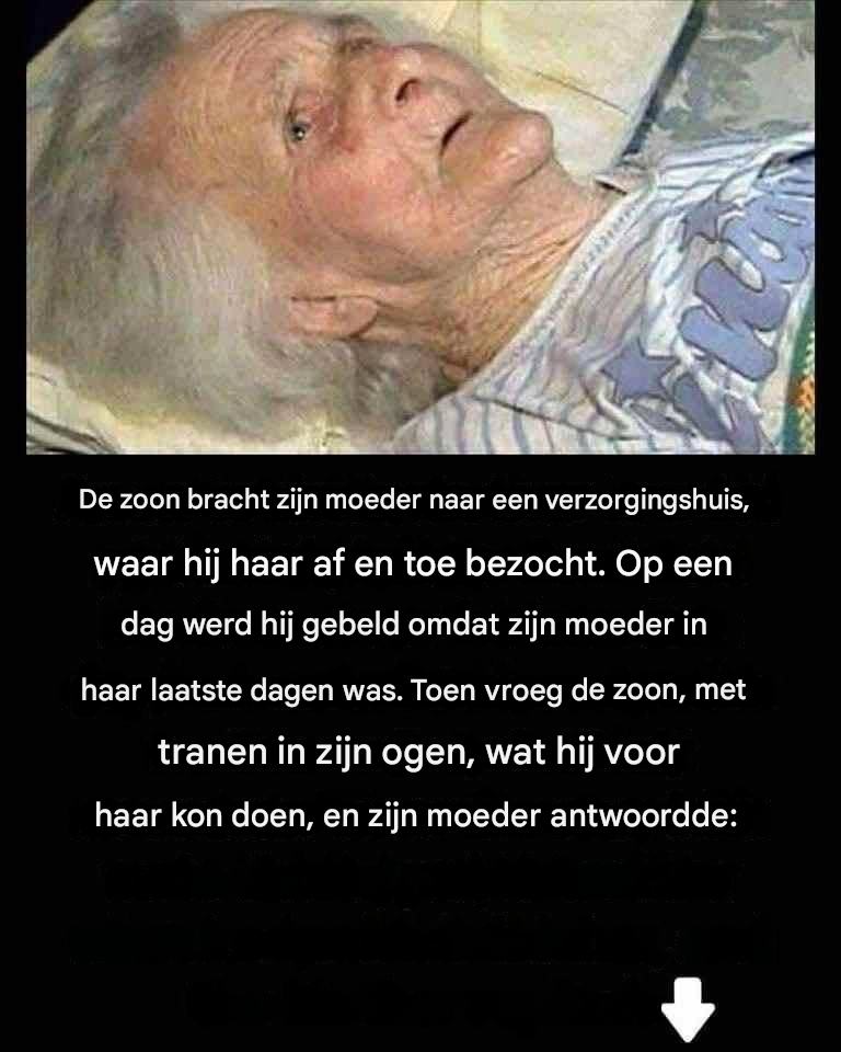 De zoon ging en zag zijn moeder in een zeer ernstige toestand op zijn sterfbed liggen.