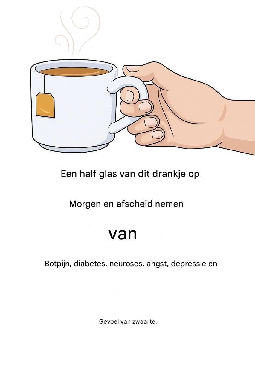 Ik begrijp het. Je wilt het recept voor het drankje op de foto (« een half glas hiervan ‘s ochtends… »). Omdat de foto een kopje thee toont, volgen hier enkele gezonde theerecepten die vaak worden gebruikt ter ondersteuning van botten, zenuwen, spijsvertering en algemeen welzijn: ✅