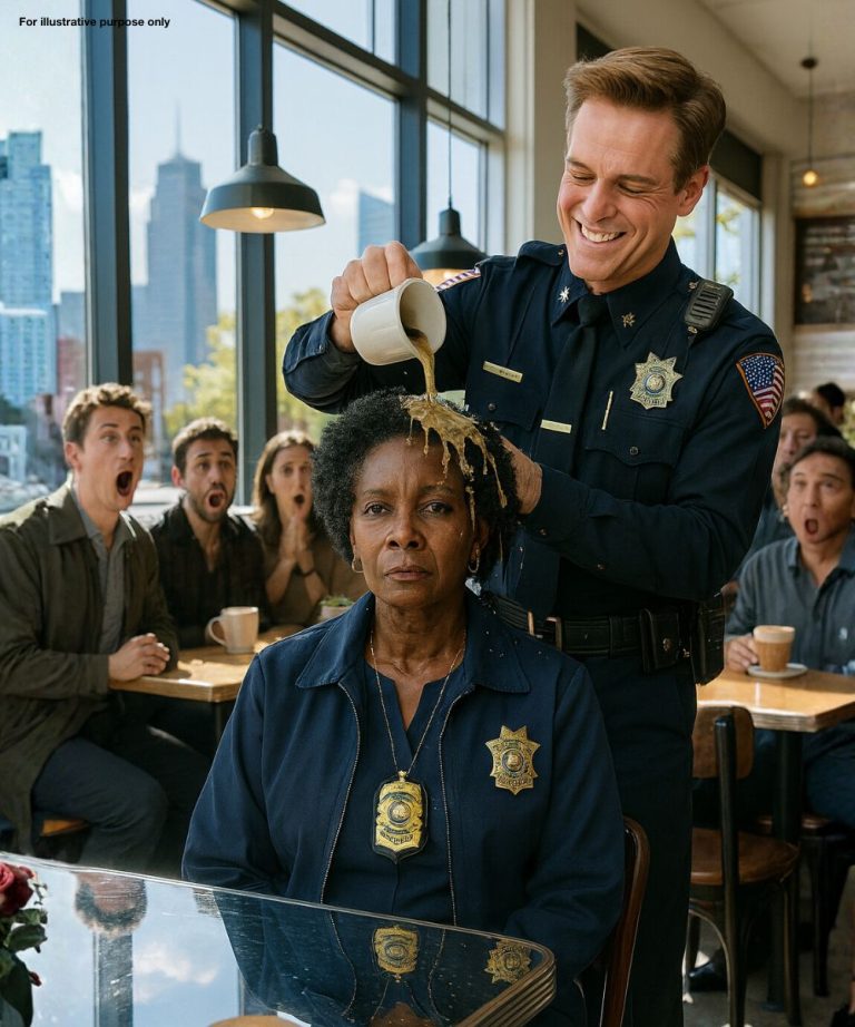 Een bevooroordeelde agent bespotte een zwarte vrouw van middelbare leeftijd door koffie over haar heen te morsen. Even later ontdekte hij wie ze werkelijk was en viel hij beschaamd op zijn knieën.