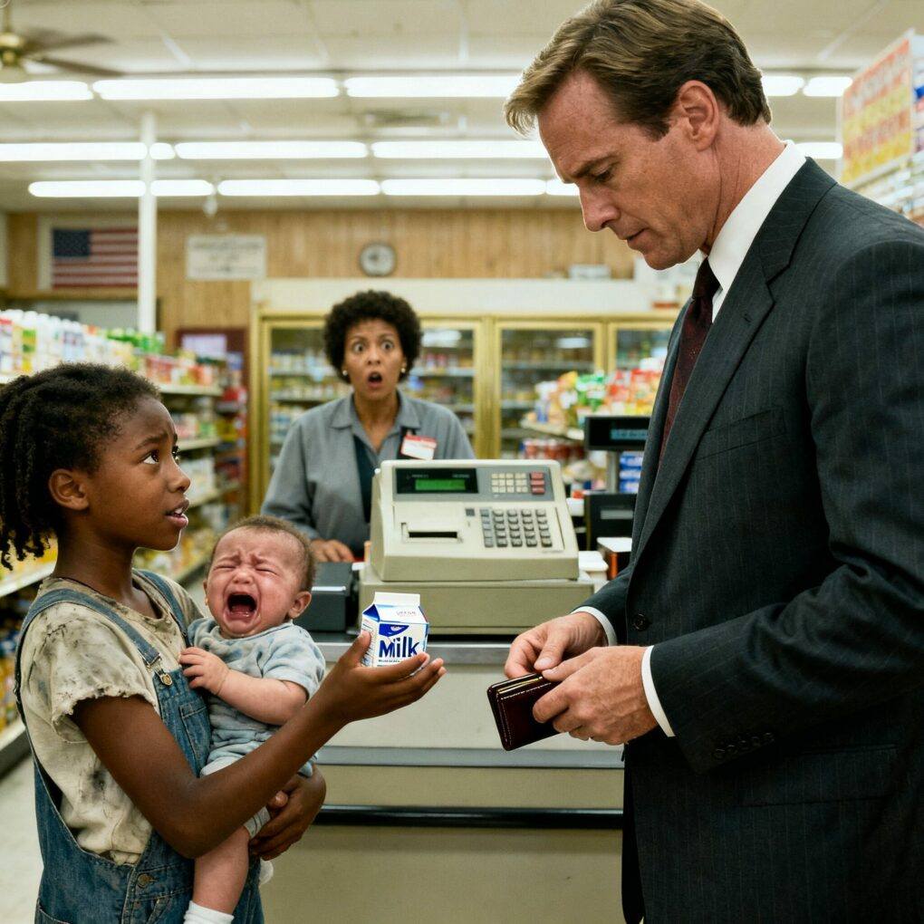 In de winkel waar zuchten te vinden zijn, gloeiden Keisha’s wangen van schaamte, maar ze boog zich naar de wereld. « Dank u wel, meneer, » fluisterde ze. « Ik zal u ooit terugbetalen. » Toen rende ze naar buiten, de melk stevig vasthoudend, tranen vermengden zich met het stof op haar gezicht.