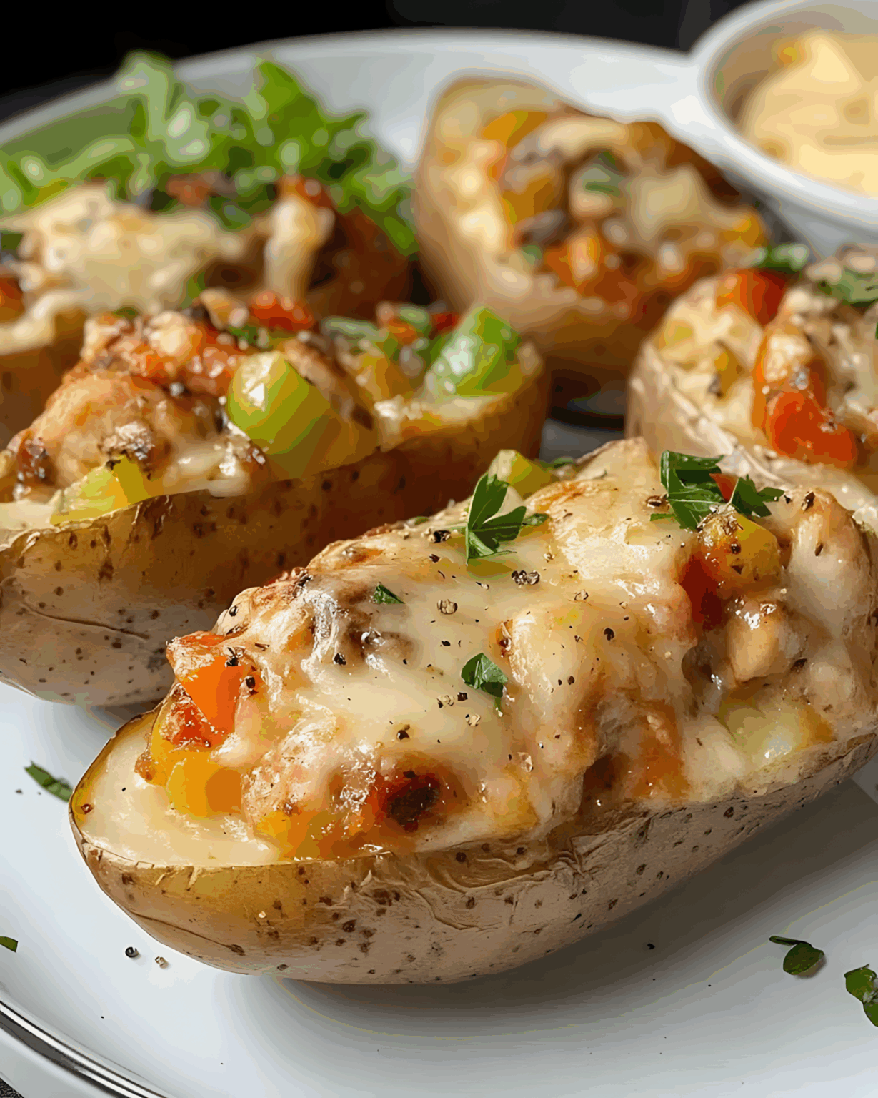 Deze overheerlijke kippaardappelbootjes is en perfect van combinatie romige, kaasachtige kaas in hartige smaakjes. Stel je voor: ensmaakstuk kippen kip, omhulde deur een zacht, zelfombechamelsaus, in de koopwaar, koopwaar, in de vleeskartiek van een kleingoed. 🤤 Dit is een maaltijd die I smaakspapillen verwent en je en warm! Ideal voor een een gezellige avond ontmoet vrienden van familie, van van gewoon voor jezelf! 🥰