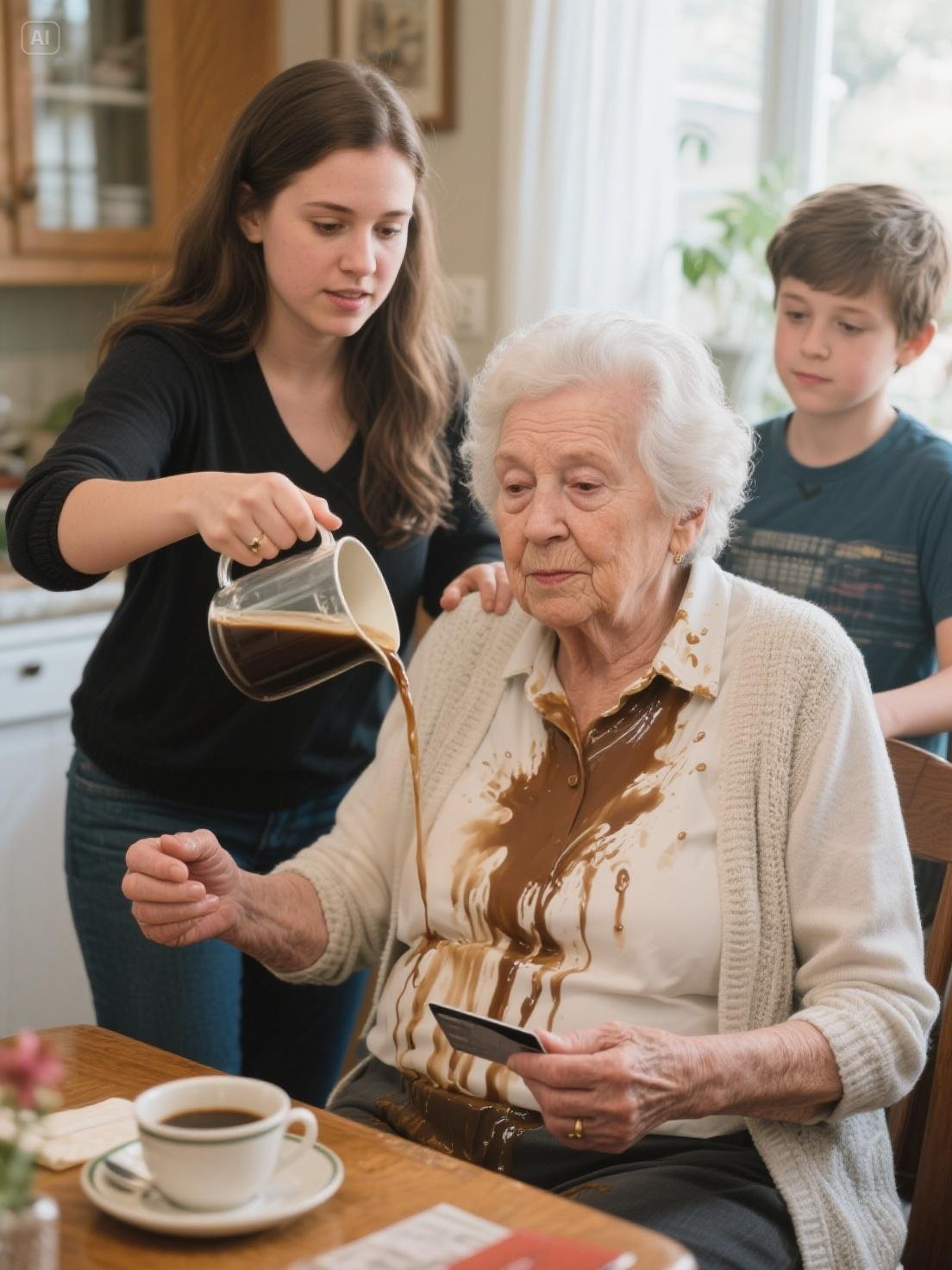 Als ik had geweten dat één kopje koffie me in een paar seconden zes of vijf jaar waardigheid kon ontnemen, was ik die ochtend waarschijnlijk in mijn lichaam gebleven. Maar het leven heeft een wrede manier om onze aanwezigheid bloot te leggen – en de scheuren in de familie waarvan we ooit beweerden dat ze onontwarbaar waren.