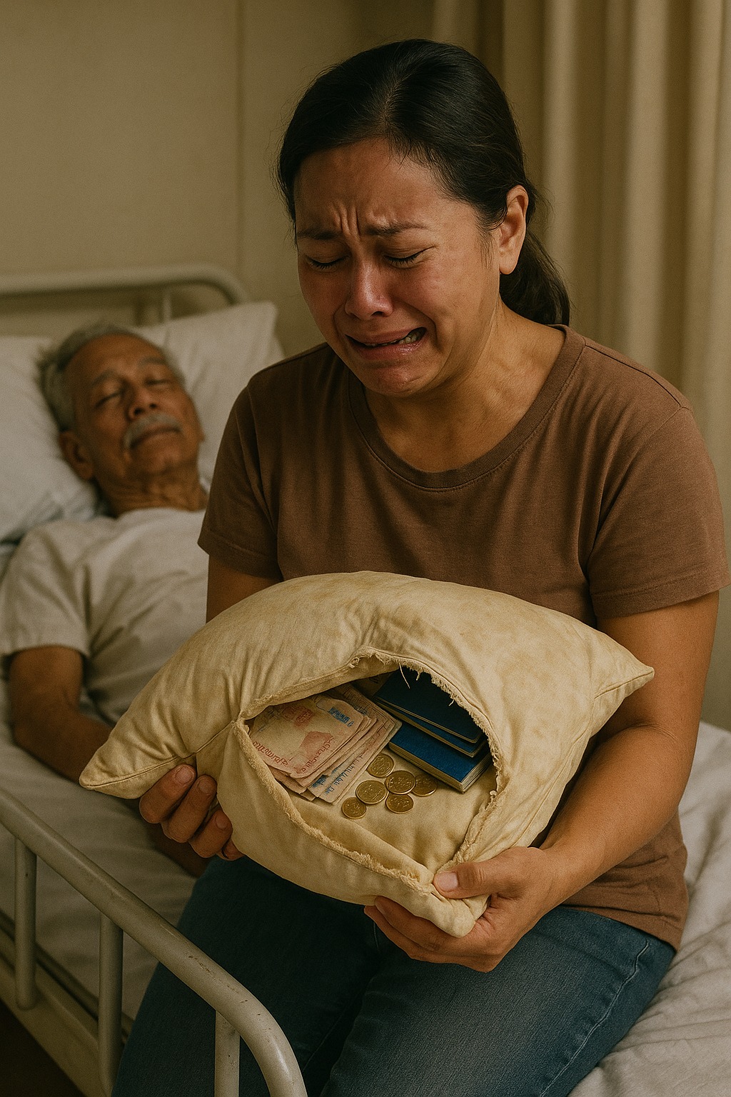 Mijn schoonvader had geen pensioen. Ik heb twaalf jaar lang met heel mijn hart voor hem gezorgd. Met zijn laatste adem gaf hij me een gescheurd kussen en zei: « Voor Maria. » Toen ik het opende, huilde ik onophoudelijk…