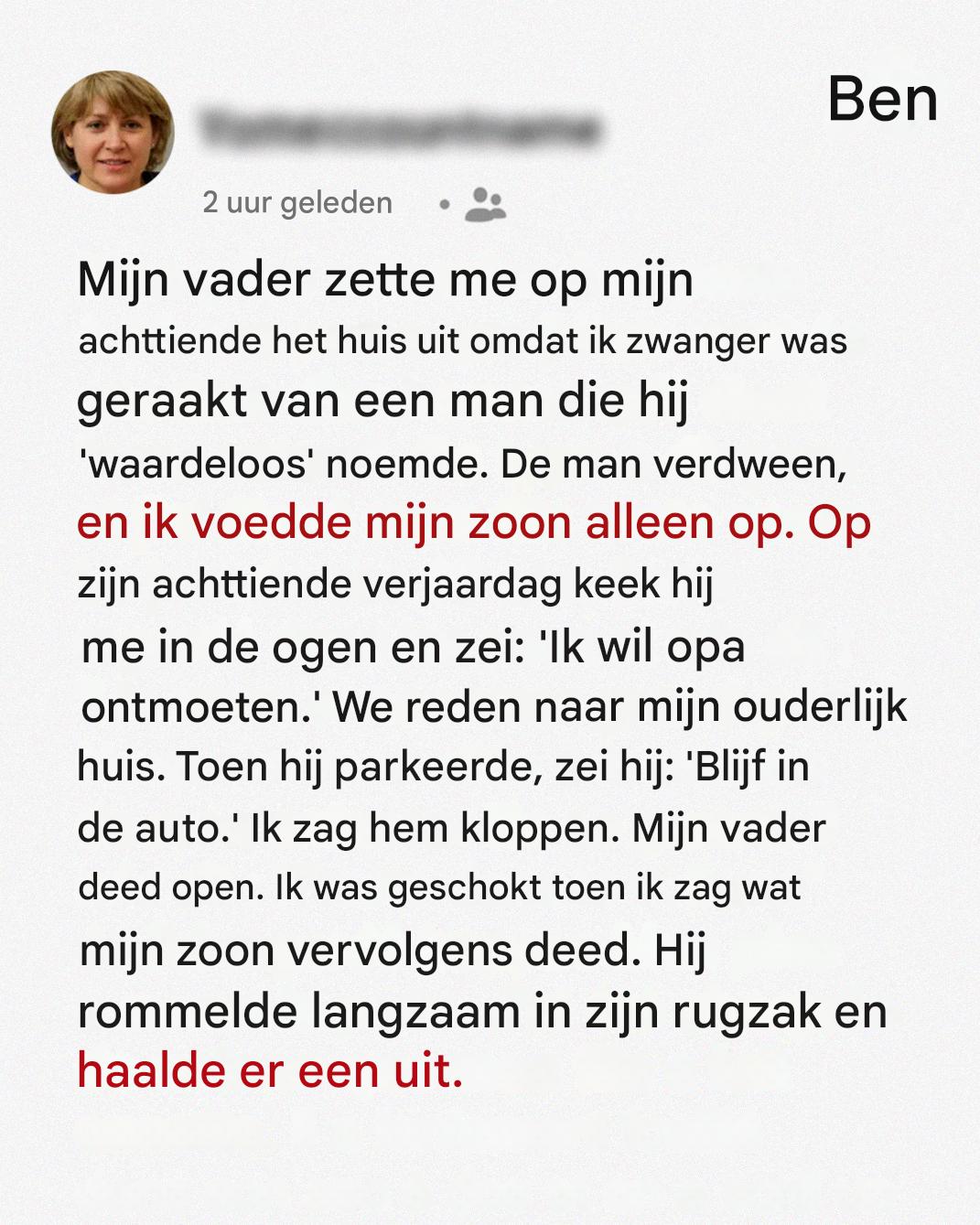 Op mijn zeventiende kostte één moment van de waarheid me alles: mijn huis, mijn familie en het laatste restje liefde van mijn vader. Achttien jaar later kwam de zoon die ik alleen had opgevoed terug om die stilte te doorbreken – met woorden die hij noch ik hadden zien aankomen.