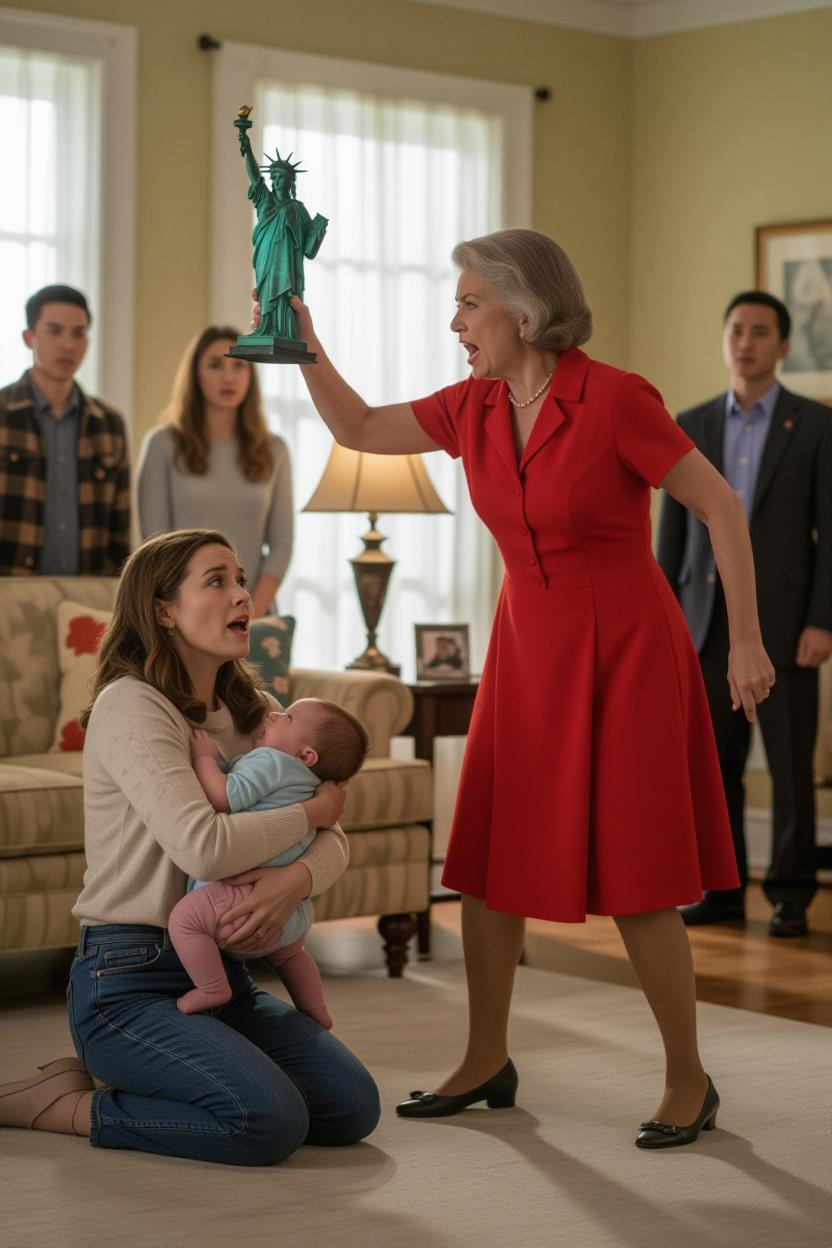 Toen mijn moeder het metalen Vrijheidsbeeld optilde en het in de zonsondergang wierp, voelde ik geen pijn, alleen ongeloof. Ik hield mezelf vast in de armen van mijn dochter, die van haar tegen de armen die mij ooit vasthielden. Mijn bloed stolde, maar het enige wat me opviel was: « Hoe kan liefde veranderen? » Die nacht, een huis dat verwoest was, veranderd in een rechtszaal van verraad, en de waarheid die kwam en alles verbrijzelde.