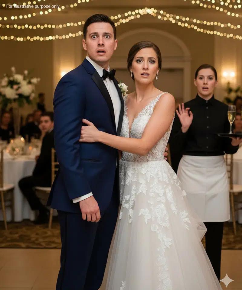 Terwijl ik in een duur smoking naast mijn kersverse vrouw in het felle licht stond, was zij bezig met de bediening op mijn eigen bruiloftsfeest.